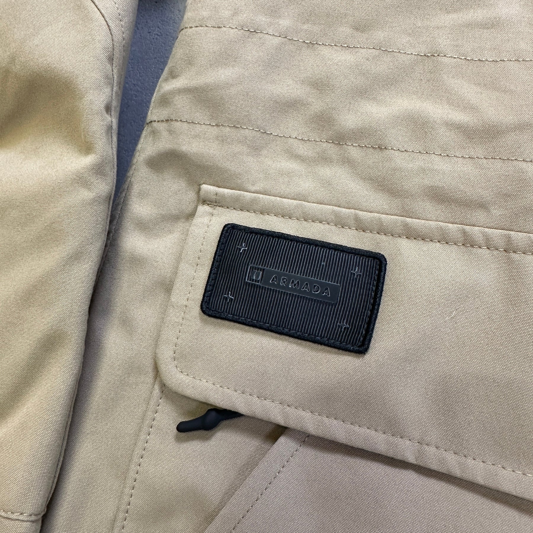 Khaki Armada Lunara 2L Insulated Jacket with waterproof shell, mapped insulation, adjustable hood, and powder skirt.