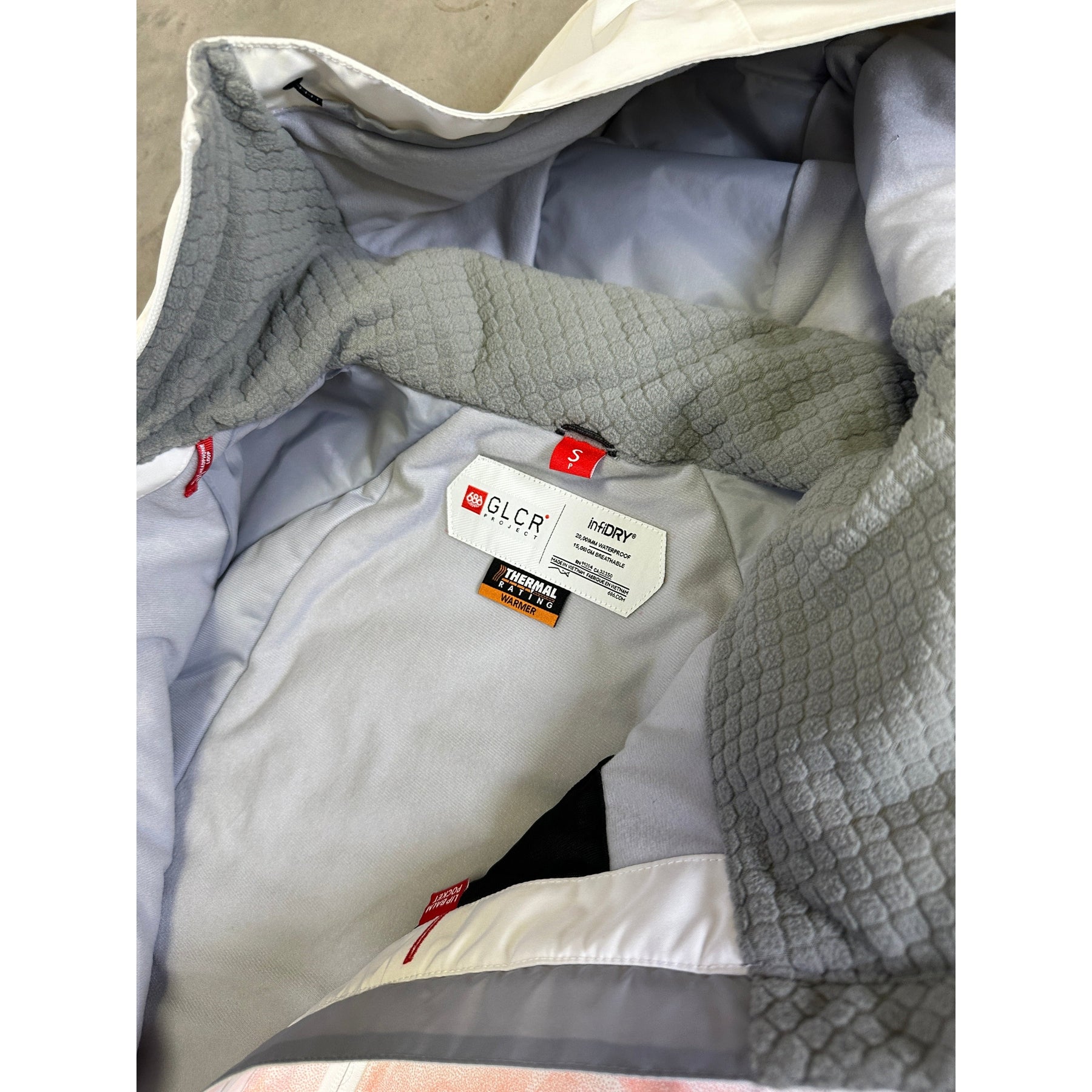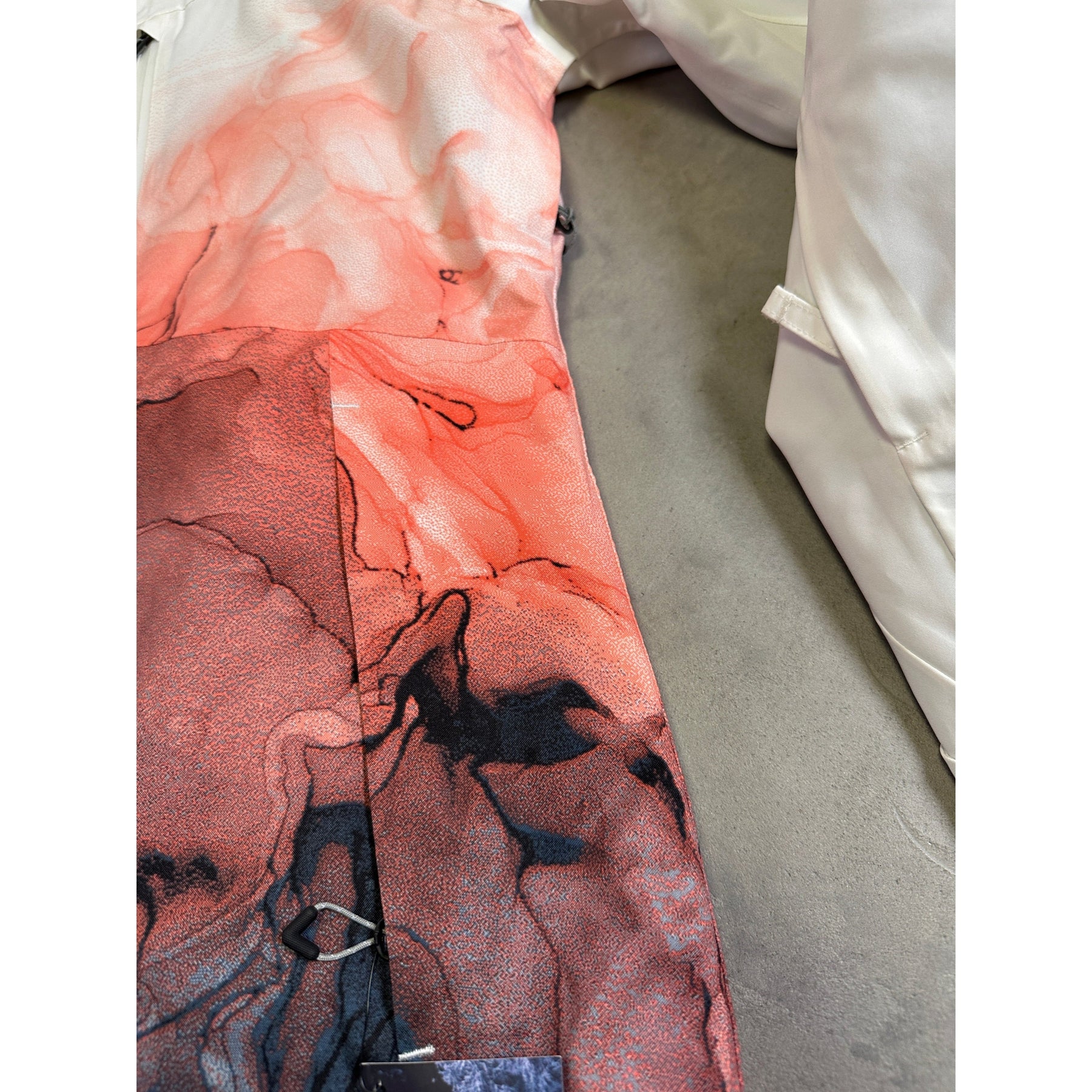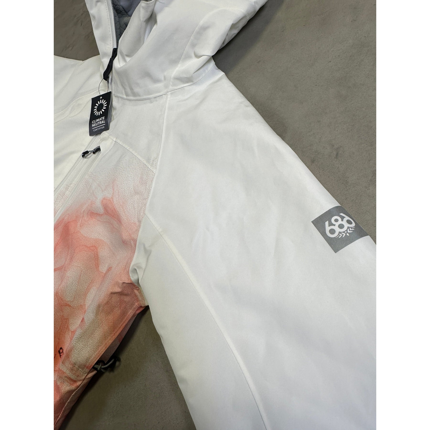 Technical details include a helmet-compatible adjustable hood, fully taped seams, powder skirt, wrist gaiters, glove-link loops, and multiple internal/external pockets for essentials and on-slope organisation. The jacket’s articulated fit supports natural movement while the longer drop-tail design adds extra coverage in cold or stormy weather.